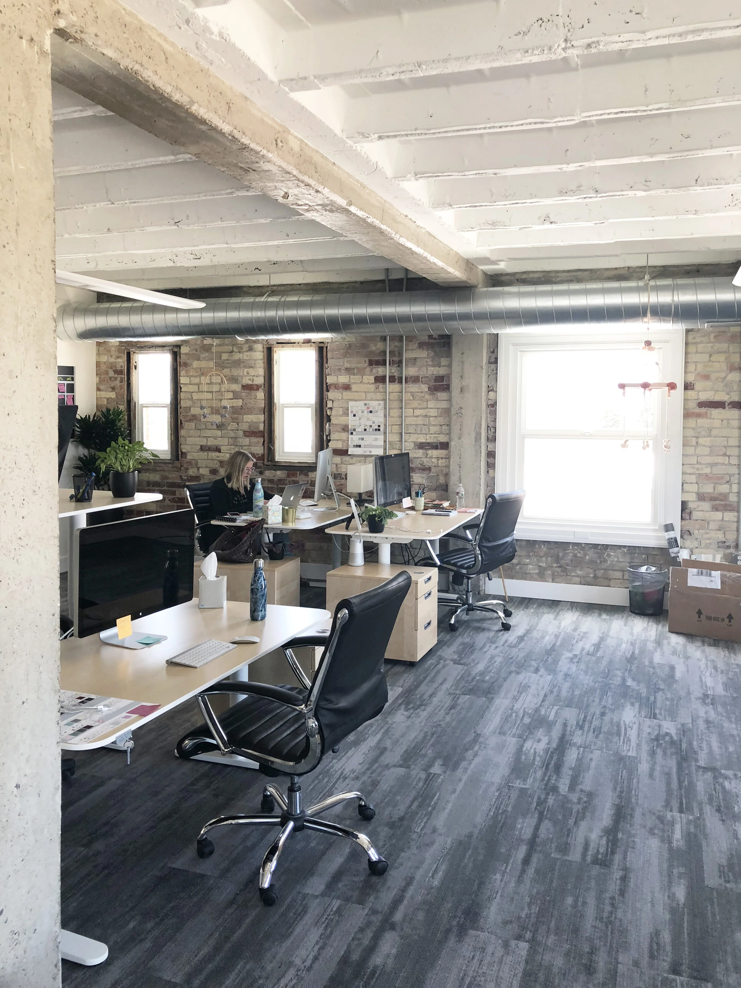 Little Unicorn is a Logan based company specializing in nursery items for young families. Their corporate culture is an upbeat, open, collaborative work environment. The existing space was a maze of halls and small windowless offices on the fourth floor of the Thatcher building on Center and Main Street in downtown Logan. The new design utilized the existing large offices along the east side and opened the rest of the space in the center to create functional collaborative space. The exposed brick walls, exposed structure ceiling,white walls and new, silver spiral mechanical ducts have transformed the space to a warm, bright, comfortable work environment.